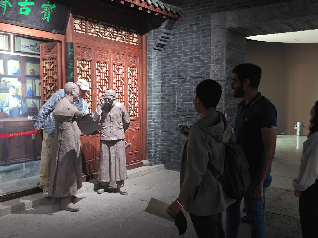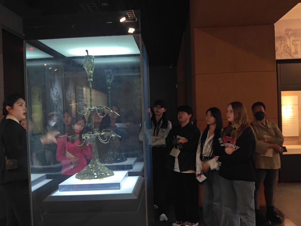最后,留学生们自行参观了烟台市博物馆的其他展厅,欣赏了中国的陶瓷、玉石、青铜器、铁器、书画、丝织品等。