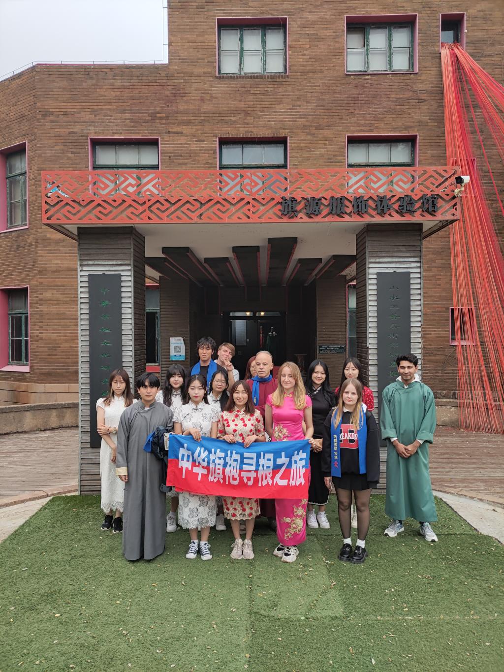 于10月13日举办了“留学生感知中华传统文化月”系列活动的第二期——锦绣古韵,旗艺风雅。来自俄罗斯、韩国、日本等国家的16名留学生在老师和工作人员的带领下来到了烟台市芝罘区,打卡了旗源旗袍博物馆,在一针一线中“沉浸式”感受地道烟台古韵。