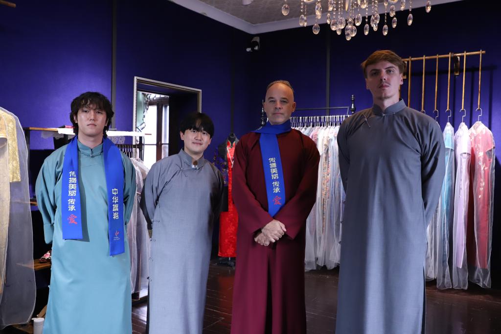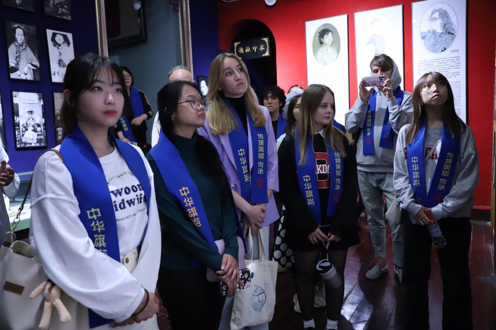 在博物馆中,讲解员带领留学生们了解旗袍的历史,并向大家展示部分旗袍及其披肩的穿法,一件件设计新颖、做工精美的旗袍引得大家驻足观赏。参观完毕后,留学生们逐一选择了自己心仪的旗袍和长袍马褂试穿,进一步感受中国传统服饰的魅力。日本学生和田佳织说:“我第一次穿旗袍,感觉非常新奇和开心。”韩国学生朴慧连说:“穿着旗袍的女子身姿曼妙,步履轻盈,这次参观让我对旗袍产生了向往。”
